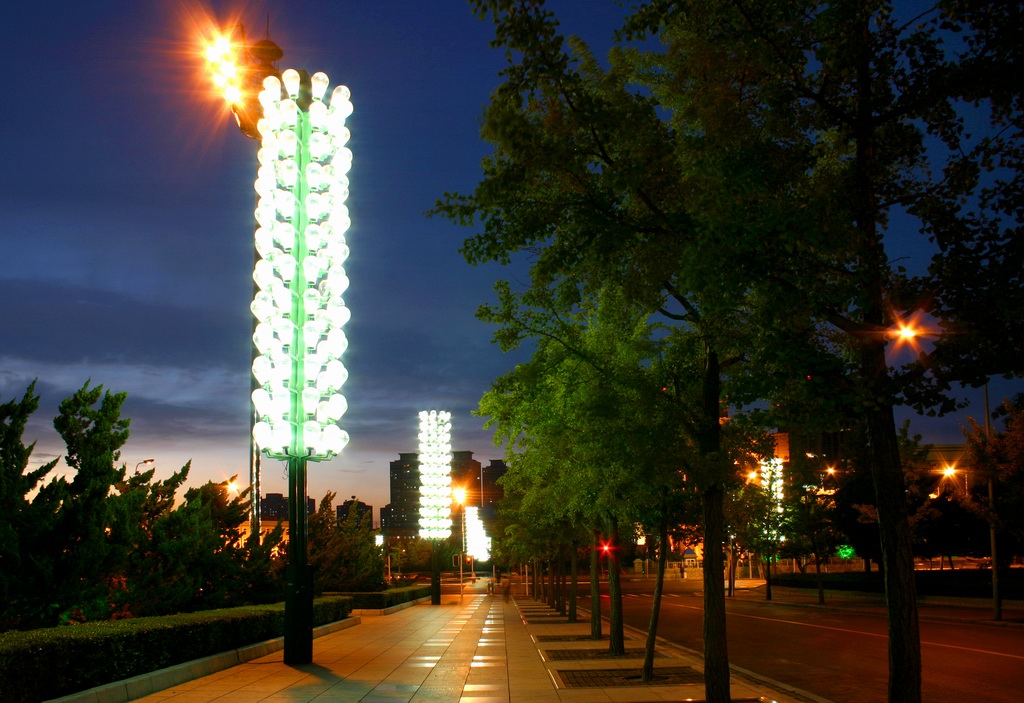 大连人民广场上的槐花灯